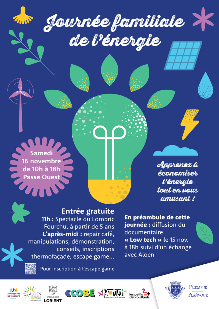 La Ville de Ploemeur organise, le 16 novembre 2024, une journée familiale de l’énergie à Passe Ouest. Cet événement convivial est dédié à la sensibilisation aux économies d’énergie et aux éco-gestes, dans le cadre de notre programme d’actions « Territoires engagés dans la transition écologique ».