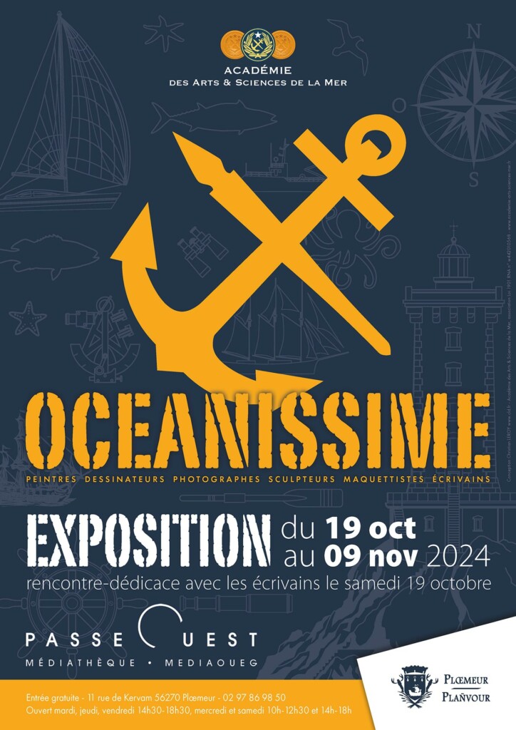 Une vingtaine d’artistes de l’Académie des Arts et Sciences de la Mer : peintres, dessinateurs, photographes, graveurs, sculpteurs, maquettistes et écrivains exposent du samedi 19 octobre au samedi 9 novembre 2024 à l’Espace Culturel Passe Ouest de Ploemeur. Une journée rencontre et dédicace aura lieu en présence des écrivains le samedi 19 octobre.