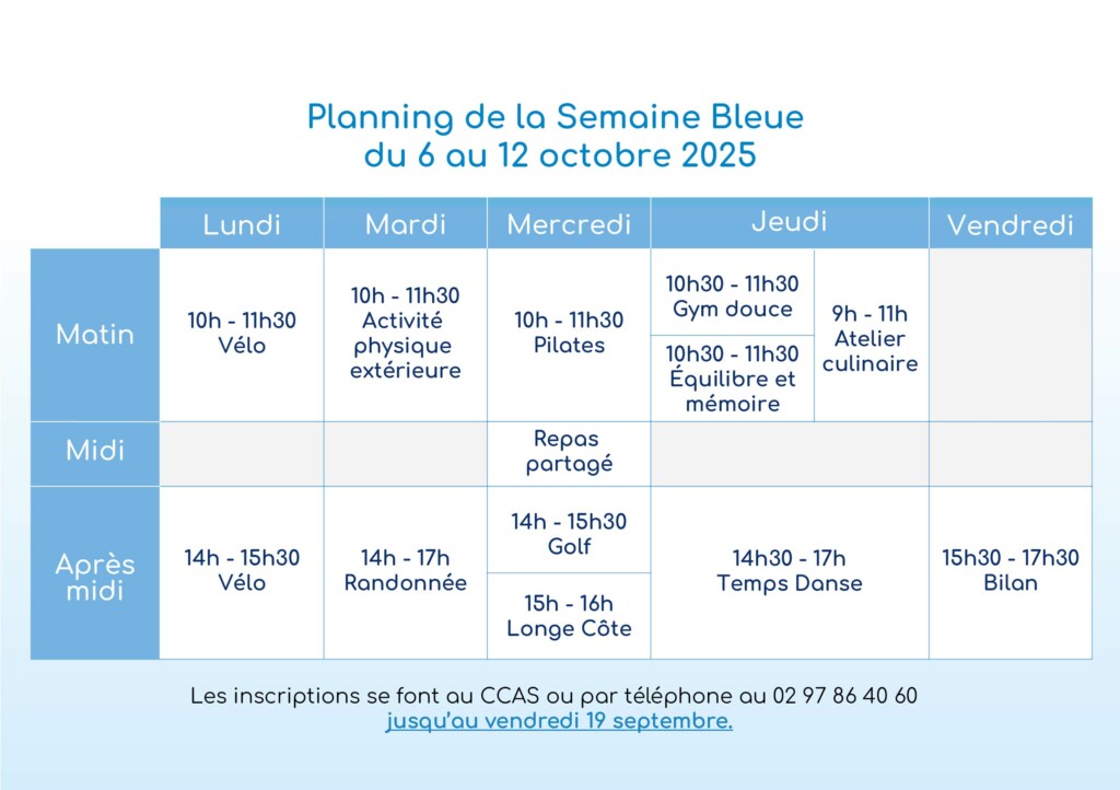 Du 6 au 10 octobre, la Ville de Ploemeur célèbre la Semaine Bleue avec un programme riche et varié pour les plus de 60 ans. Objectif : bouger, partager et s’épanouir.