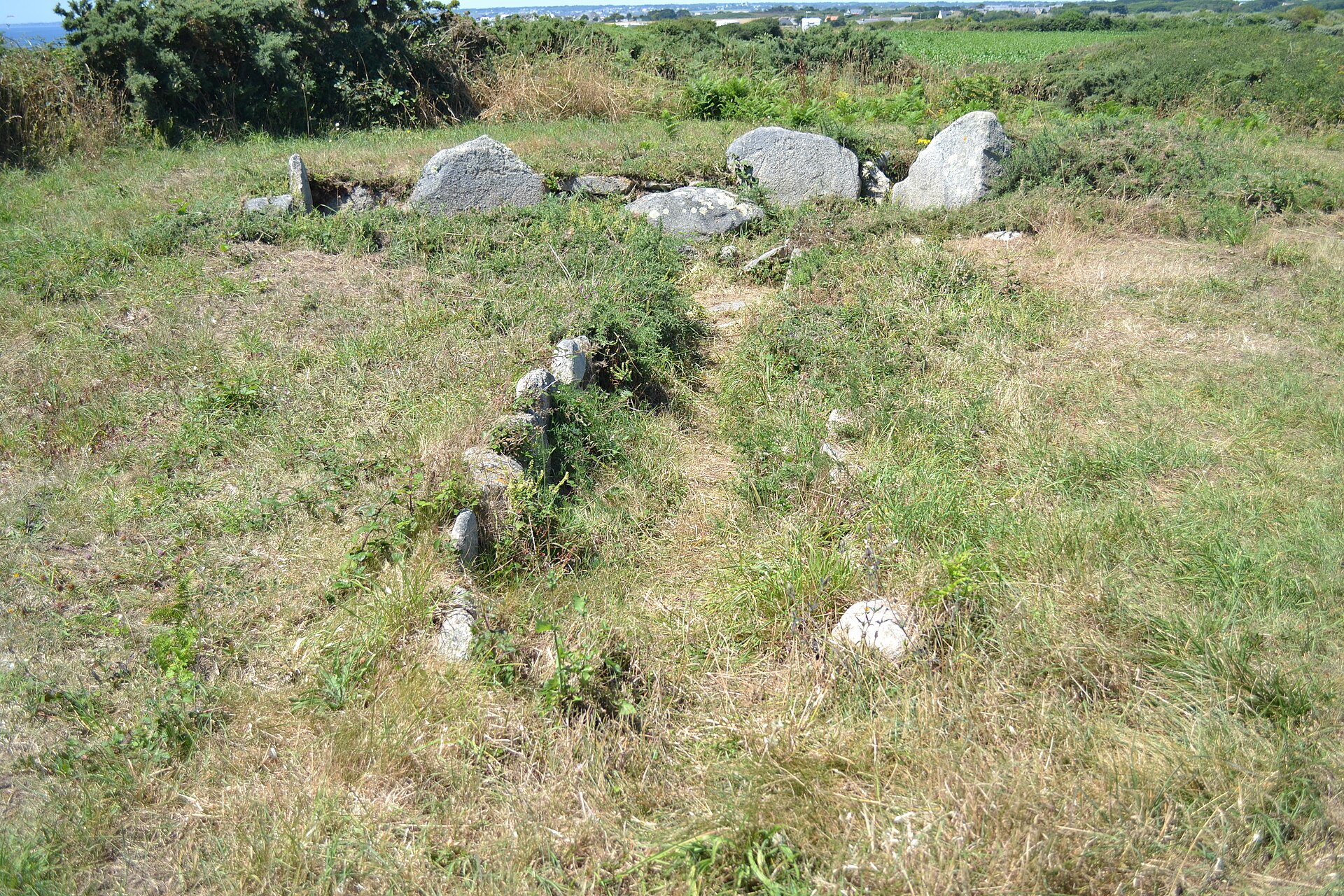Durant le nettoyage du site en 2003, le Comité d’histoire du Pays de Plœmeur a découvert des débris de poteries néolithiques du type campaniforme et une très belle pendeloque. Ces pièces ont été remises au Service régional de l’archéologie à Rennes qui, en retour, les a mises en dépôt à la Ville de Plœmeur.