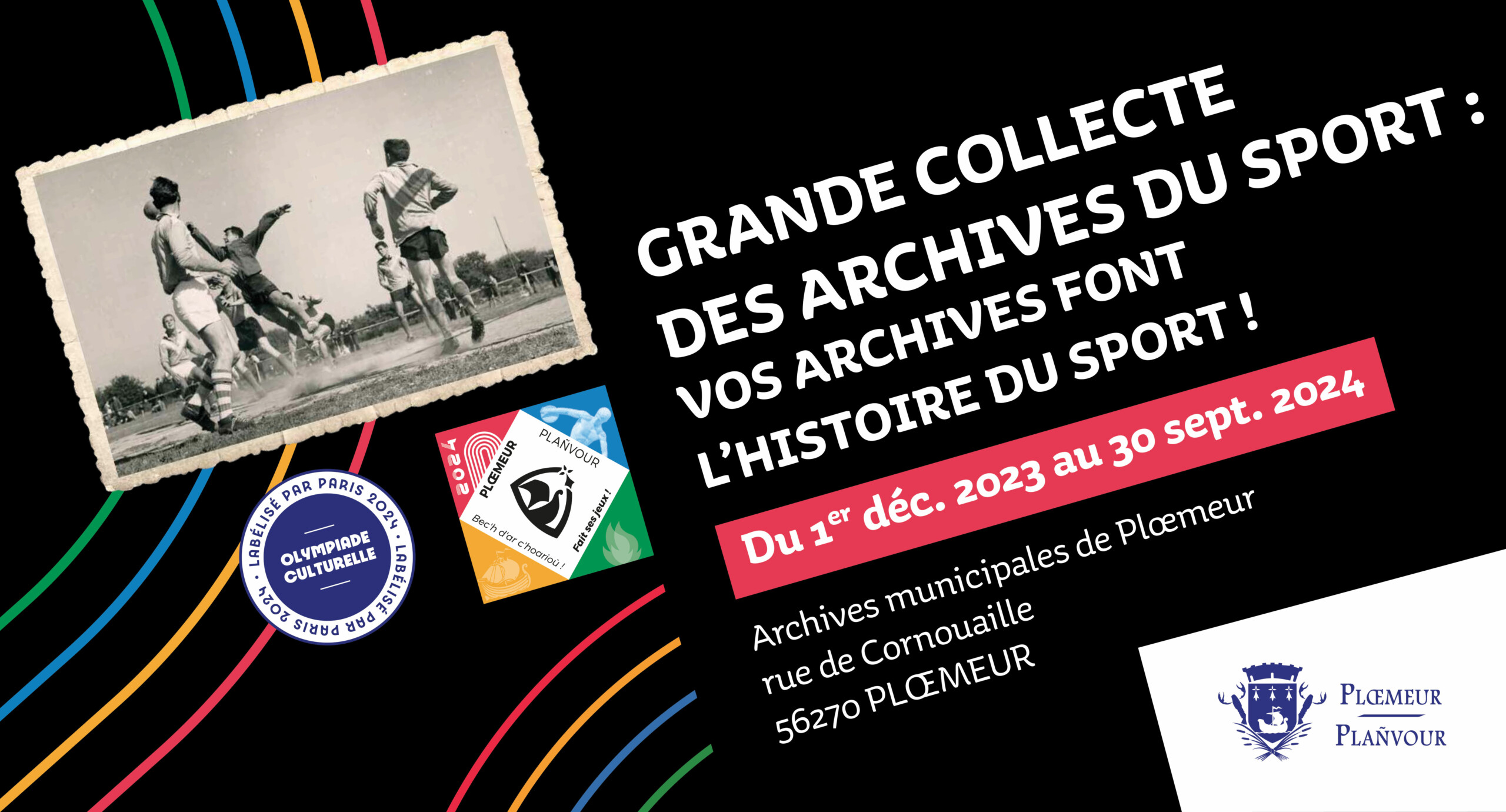 Depuis le 10 juillet 2024, vous pouvez découvrir les documents issus de la Collecte des archives du sport lancée en janvier 2024 : https://archivessport.ploemeur.fr/