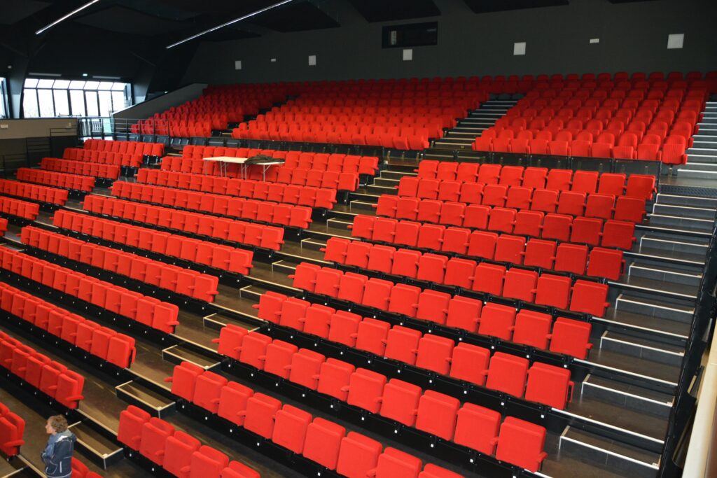 Équipée d’un système de gradins modulaires, la salle de spectacle permet toutes les configurations : salle de 25 x 25 m aménageable selon vos besoins, de 280 à 985 places assises en gradins ou de 1200 places debout, scène de 20 x 9 m avec cadre variable, équipement complet avec régie pour le son et l’éclairage, cuisine-office pour réceptions et banquets (traiteur)