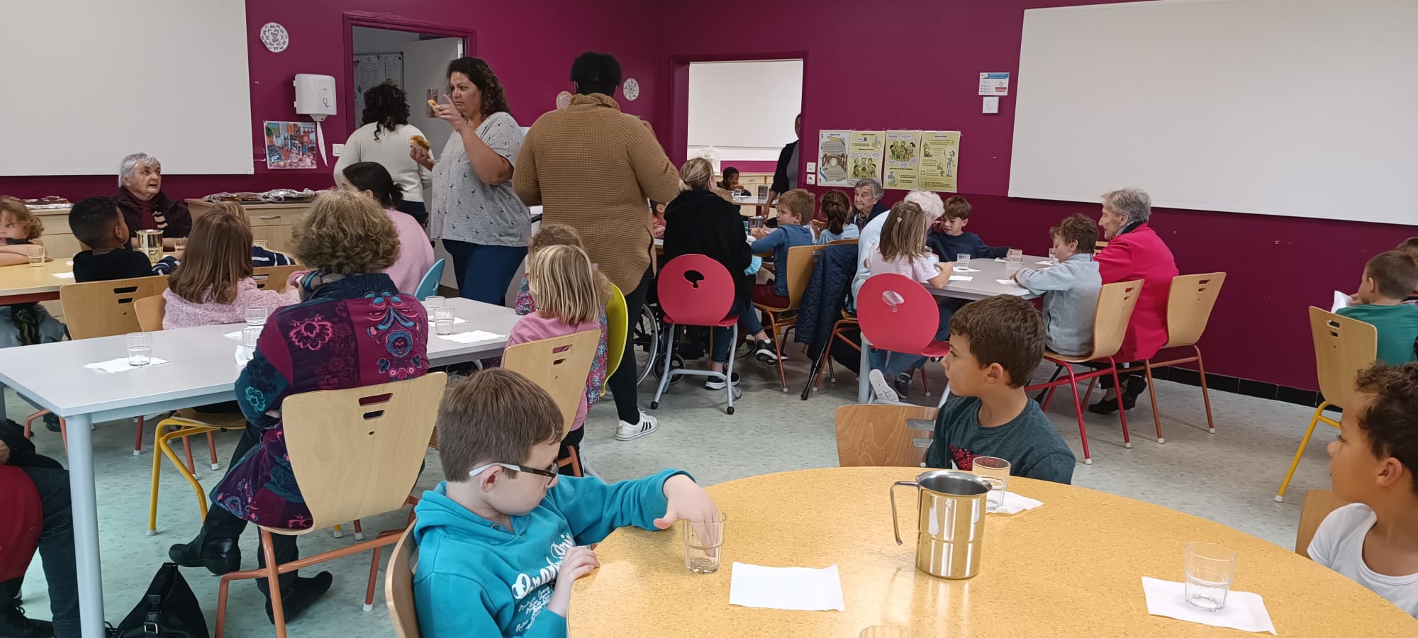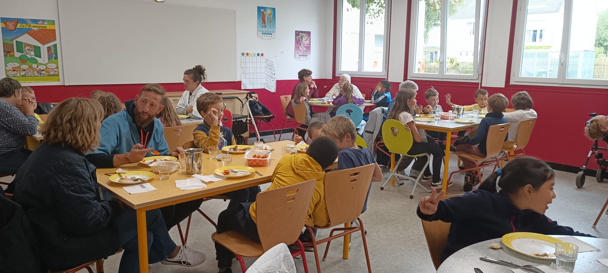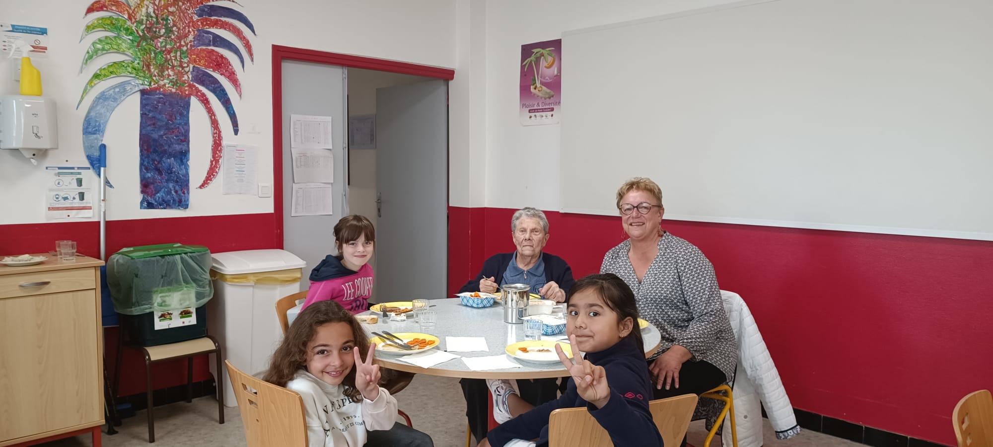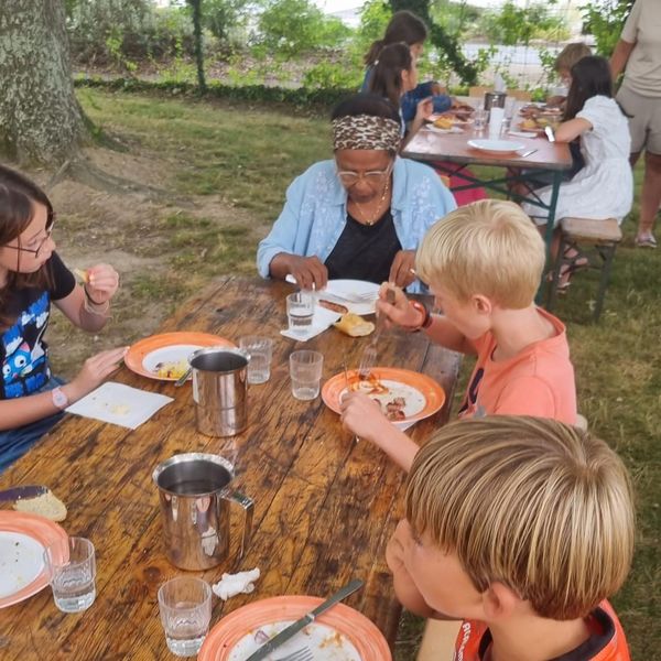 Depuis 2018, le service d’aide à domicile et les services éducation enfance jeunesse ont mis en place des repas partagés dans les écoles de la commune. Ces temps de convivialités intergénérationnels ravissent petits et grands, autour de belles tablées. L’occasion aussi de faire des jeux ensemble en fin de repas et surtout d’échanges et de partages.